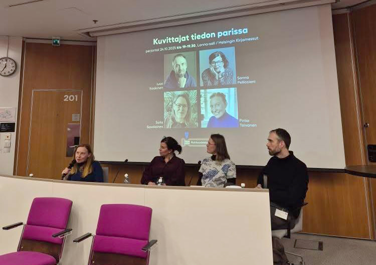 Kuvittajat tiedon parissa -paneelikeskustelu Helsingin Kirjamessuilla